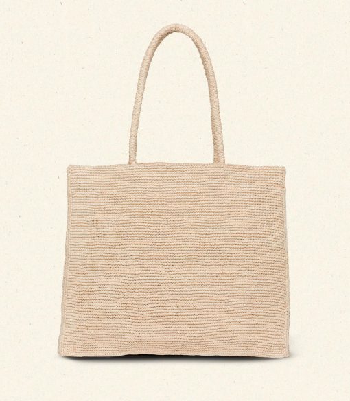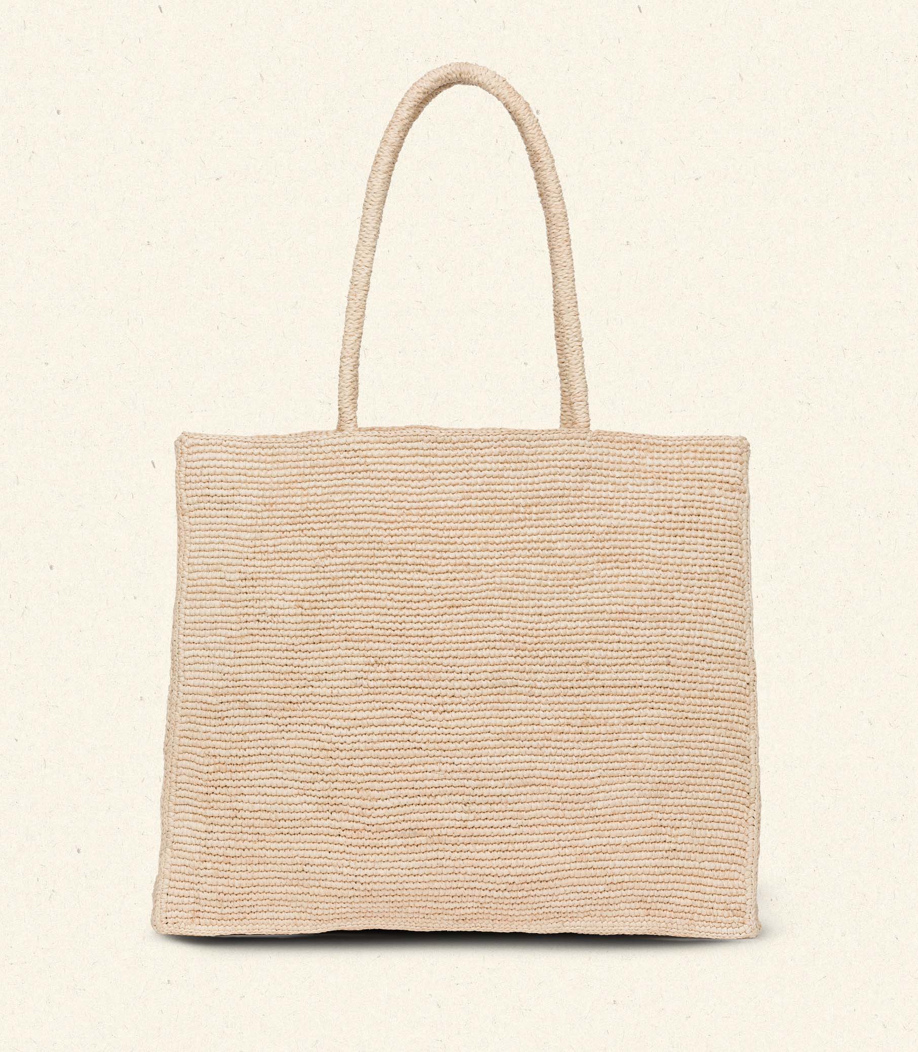 Handwoven by artisans in Madagascar from raffia, the Grande Mathilde Bag is a large square carryall tote with woven handles that’s perfectly suited to beach days, travel, or summers in the city.