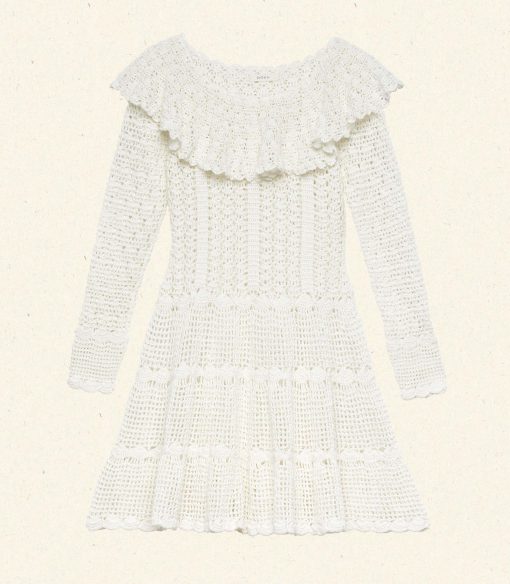 nMade entirely by hand, the DÔEN Heirloom Capucine Dress is a treasure meant to be cherished for years to come. Drawing inspiration from the hand-knit lace of the Victorian era, the Capucine features a wide scoop neckline with a crochet ruffle, a fitted bodice, long sleeves, and a swingy mini skirt.Crafted from 100% mercerized Pima cotton, each dress is skillfully hand-crocheted by our artisans in Peru, with each one taking several days to complete. Because each dress is handmade, no two are exactly alike.