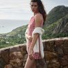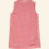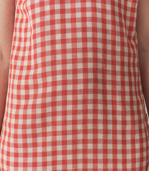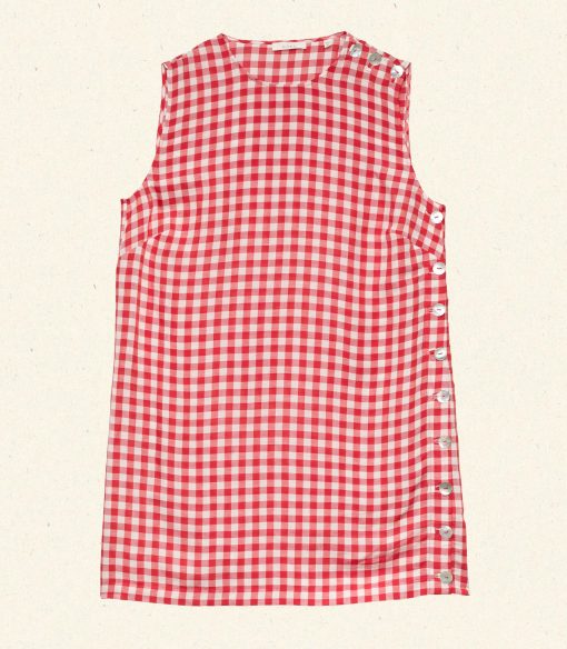 Crafted from a lightweight rayon-linen blend and rendered in our nostalgic Marilyn Gingham, the Coralie is a ‘60s-inspired sleeveless shift dress with a crew neckline, a straight cut, and a playful mini hemline. Shell buttons fasten at the side seam and shoulder.