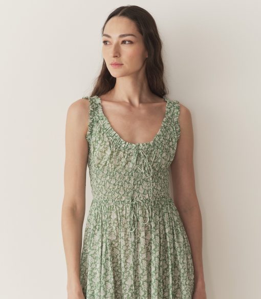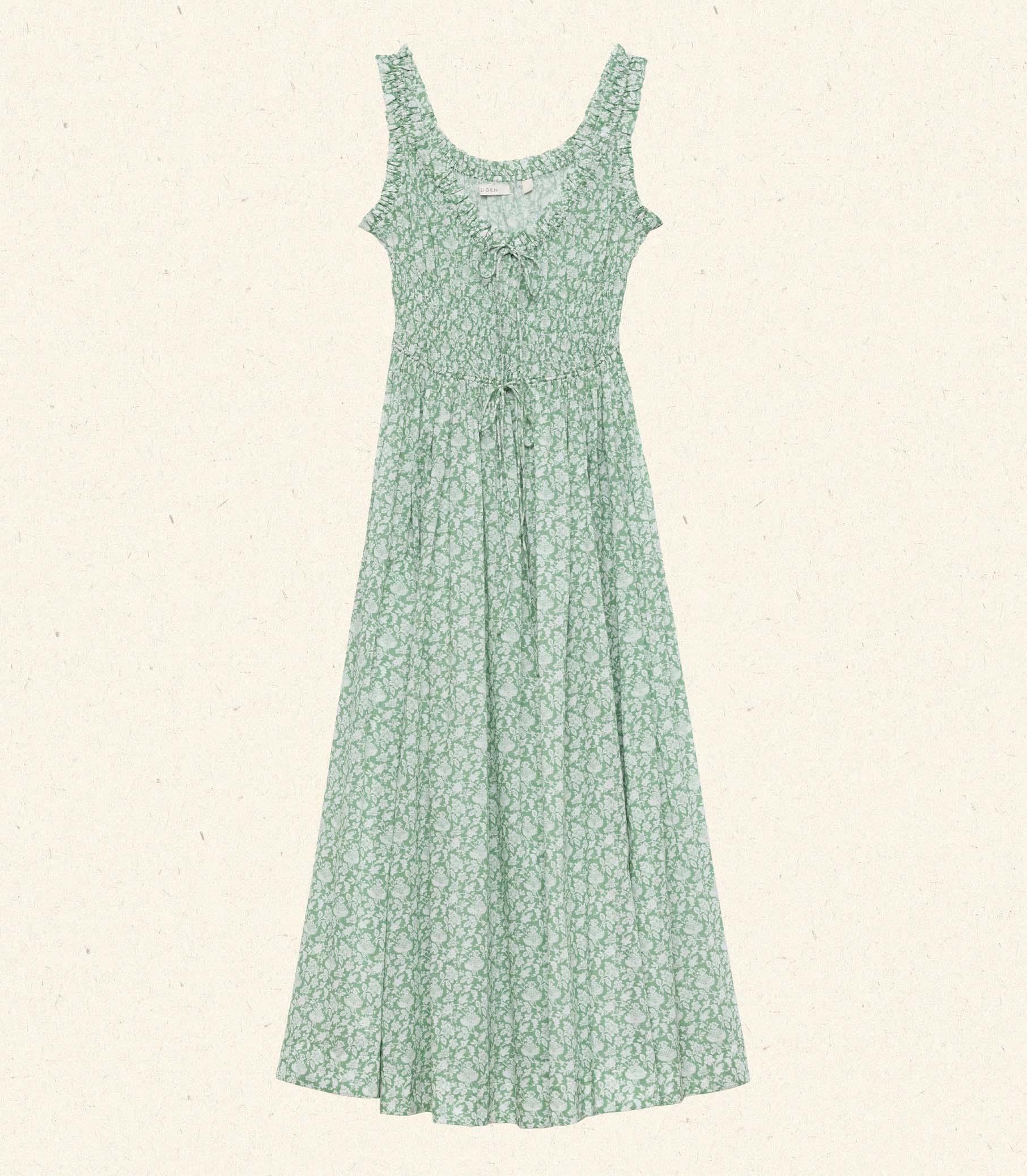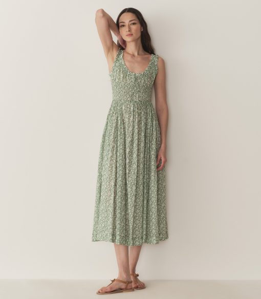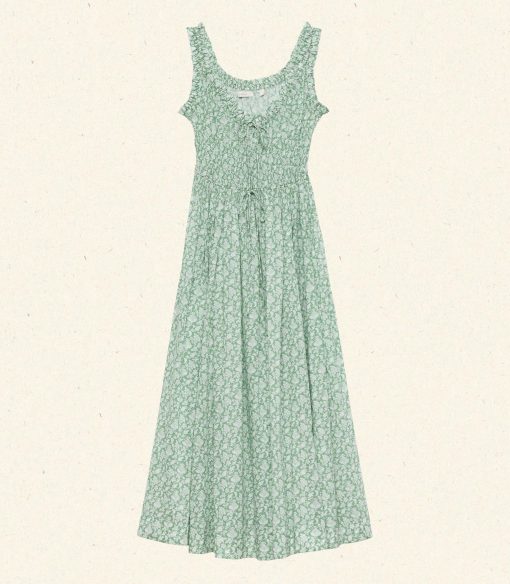 Crafted from a soft, lightweight organic cotton voile, the fan-favorite Emmaretta returns for Spring, now graced with our beloved Tea Floral—a print we first introduced in 2018, inspired by vintage English chintzes. The Emmaretta features a scoop neckline with an adjustable tie, a gathered bust, and thick straps trimmed with petite ruffles. A smocked bodice with a second adjustable tie gives way to a full, ankle-grazing skirt.