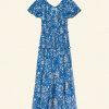Crafted in a crisp organic cotton poplin and reimagined in our Jardins de la Fontaine, the Leanne Dress features a scoop neckline, gathered bust, and fitted bodice framed with petite ruffles. A third gathered panel finishes just below the hips, flaring out into an ankle-length skirt, while elastic lends give to the short puffed sleeves, bust, and waist.