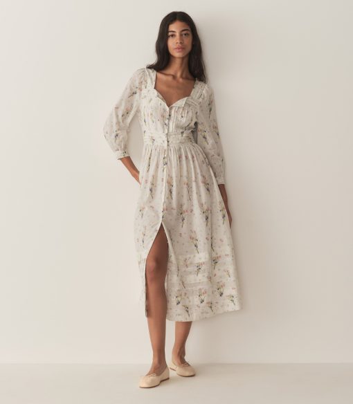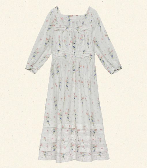 In a soft, lightweight organic cotton voile, the Minta Dress features a breezy silhouette, square neckline, and bracelet-length sleeves finished with single button cuffs. Panels of wide pintucks frame the neckline and structure the waist, giving shape to the bodice and button-down front.