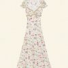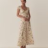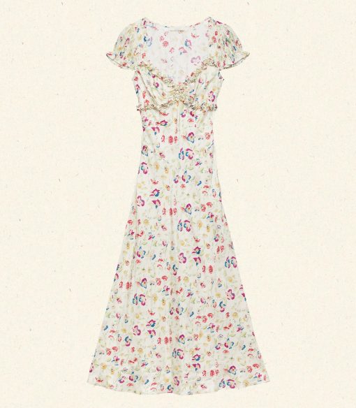 In silk-viscose twill graced with our ‘30s-inspired Windswept Blooms print, the Valerine Dress features short puffed sleeves and a sweetheart neckline trimmed with petite ruffles. A fitted waist yoke gives way to an ankle-grazing bias cut skirt, and an invisible side seam zipper offers the perfect fit.