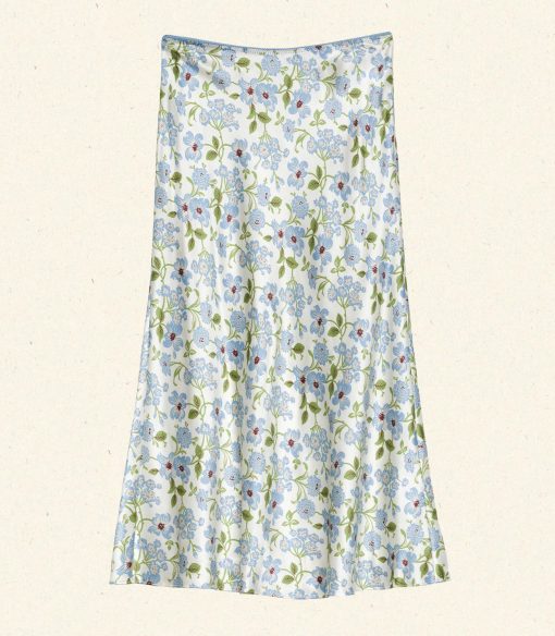 In a buttery silk satin, the Elowena Skirt is reimagined for Spring in our Strawberry Moon Floral, a beloved print we first introduced in 2021. It features a high waist trimmed with elastic scallop detailing and a flowy bias-cut skirt.