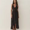 Taking cues from the disco halter tops of the 1970s, the Emmelie Top is crafted from a floaty silk georgette lined with soft viscose, featuring a plunging V-neckline framed with cascading ruffles and a self-tie halter strap. Pair with the Elisa Skirt for a matching set.