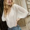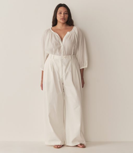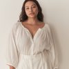 In the softest blend of organic cotton and viscose, the Jiana Top features a breezy silhouette and generous bracelet-length sleeves. Mother-of-pearl buttons extend down the center front. Wear it loose, or tuck it into your favorite high-waisted jeans.
