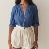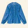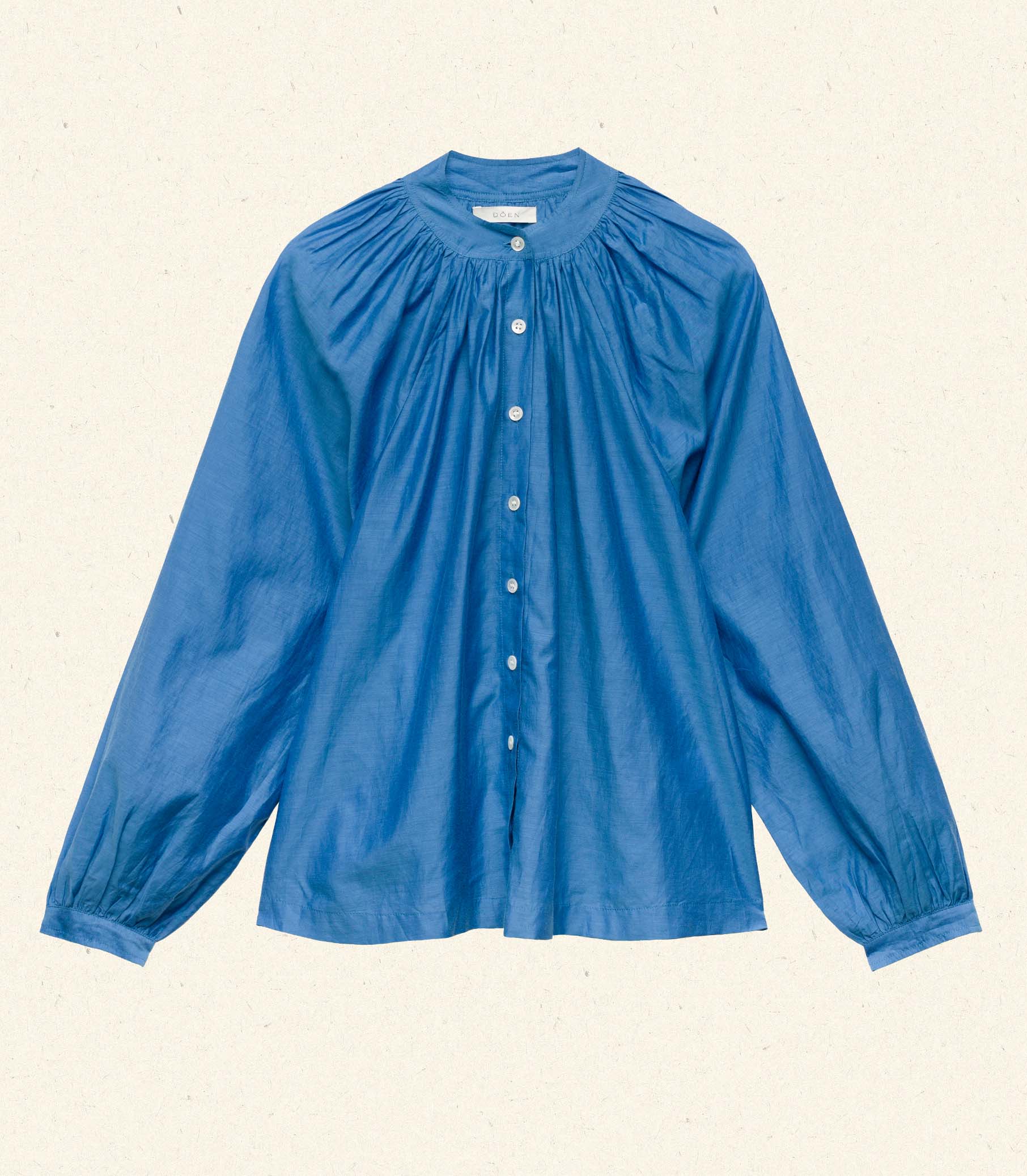 An early favorite of our co-founder, Katherine, the Julienne Top takes cues from our beloved Jane Blouse, crafted from a soft, lightweight cotton-silk voile. With a breezy silhouette, it features full-length raglan sleeves, a wide stand collar, and mother-of-pearl buttons at the center front. Wear it loose, or tuck it into your favorite high-waisted jeans.
