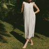 Crafted from the softest 100% organic cotton voile, the Lovisa Nightgown is a beloved Favorite Character we return to again and again. A high neckline graced with stretchy smocking, petite ruffles, and intricate hand embroidery is framed with delicate flutter sleeves, giving way to a loose, breezy silhouette and an ankle-grazing skirt.