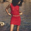 Made entirely by hand, the DÔEN Heirloom Marcia Top draws inspiration from our beloved Annalisa Dress. A true labor of love, the Marcia is a sleeveless style with a fitted silhouette. It features scallop crochet trim at the crew neckline, sleeve openings, and hem. Three hand-crocheted buttons extend down the back.nnCrafted from 100% mercerized Pima cotton, each top is skillfully hand-crocheted by our artisans in Peru, with each one taking several days to complete. Groups of knitters hand-crochet each flower before they’re meticulously hand-sewn onto the body of the top, in total passing through the hands of at least 15 different craftswomen before the piece is complete. Because each top is handmade, no two are exactly alike.
