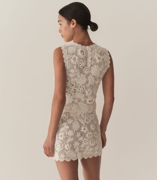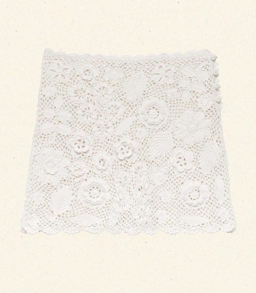 Made entirely by hand, the DÔEN Heirloom Maritza Skirt draws inspiration from our beloved Annalisa Dress. A favorite of Katherine’s and a true labor of love, the Maritzia is a mini skirt with three hand-crochet buttons at the side. It features scallop crochet trim at the waist and hem.nnCrafted from 100% mercerized Pima cotton, each skirt is skillfully hand-crocheted by our artisans in Peru, with each one taking several days to complete. Groups of knitters hand-crochet each flower before they’re meticulously hand-sewn onto the body of the skirt, in total passing through the hands of at least 15 different craftswomen before the piece is complete. Because each skirt is handmade, no two are exactly alike.