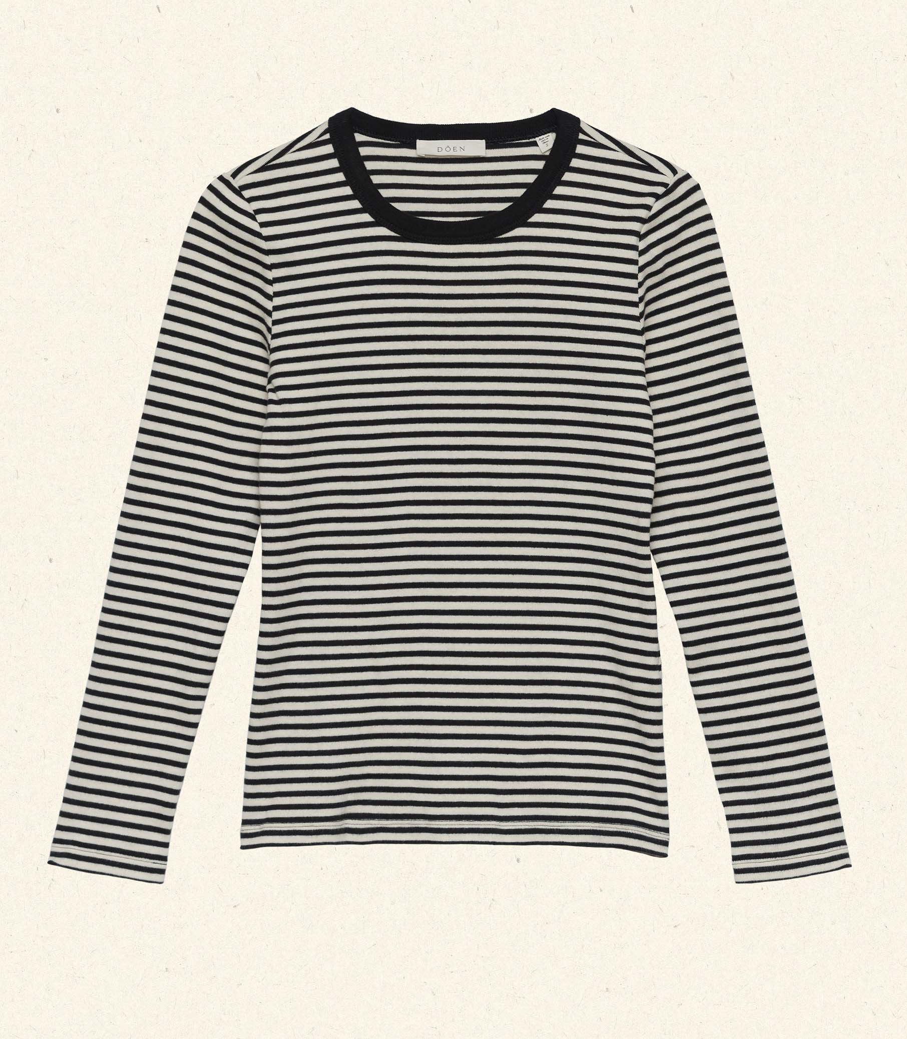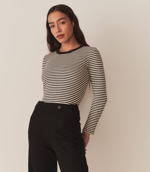 Crafted from a soft blend of regenerative and recycled cotton, the Annie Tee is a year-round wardrobe staple made for layering. It features a fitted silhouette, three-quarter-length sleeves, and a contrast crew neck.
