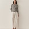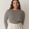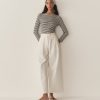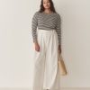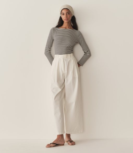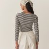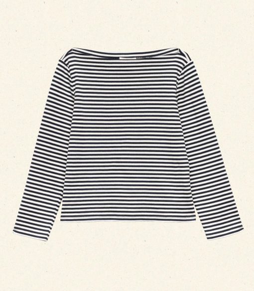 Crafted from a soft blend of regenerative and recycled cotton and rendered in our nautical navy-and-white Nantucket Stripe, the ‘60s-inspired Paulette Tee features a bateau neckline, three-quarter-length sleeves, and a fitted silhouette.