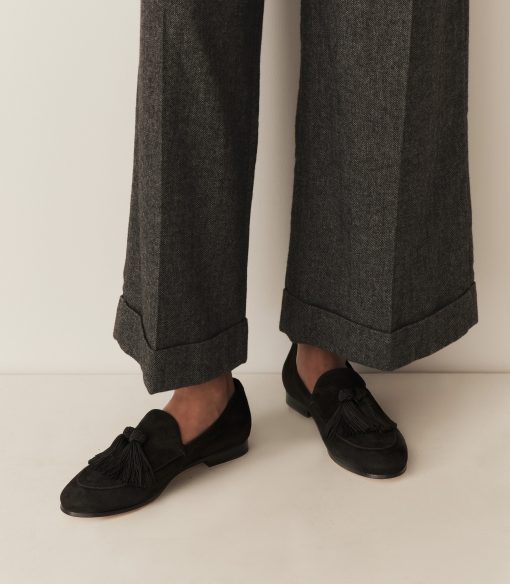 Handcrafted in Italy from suede, the ‘60s-inspired Arlow Loafer features a high cut, a rounded toe, leather lining, grosgrain piping, and a silk tassel detail.